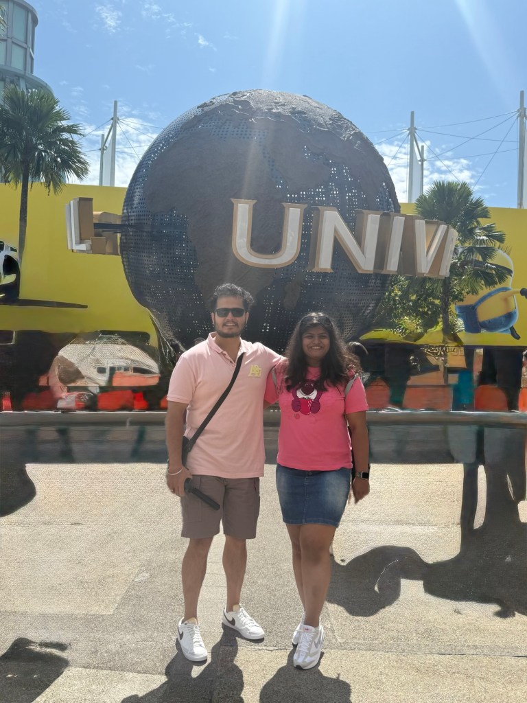 The next day, we headed to Universal Studios — not by metro, but by Grab taxi, just to see the streets and feel the vibe. Our driver, a cheerful Malaysian-Indian, suggested temples and hawker stalls. So classic! 😄